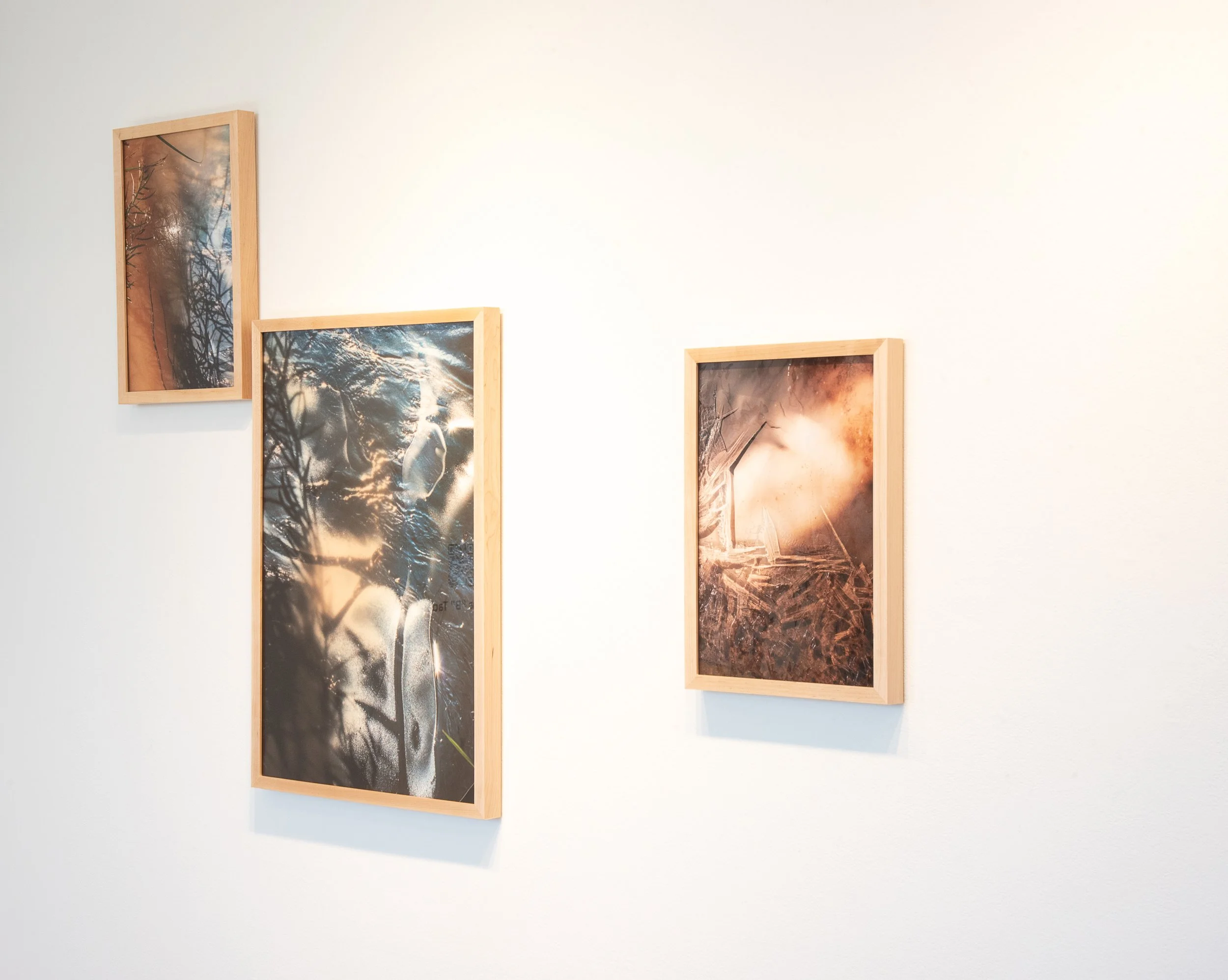 SF Camerawork, FORECAST, 2025, framed pigment print photographs, left to right: Many Suns, Coyote Willow, Mirror, 2024 - 2025, installation photo by Miles Urban